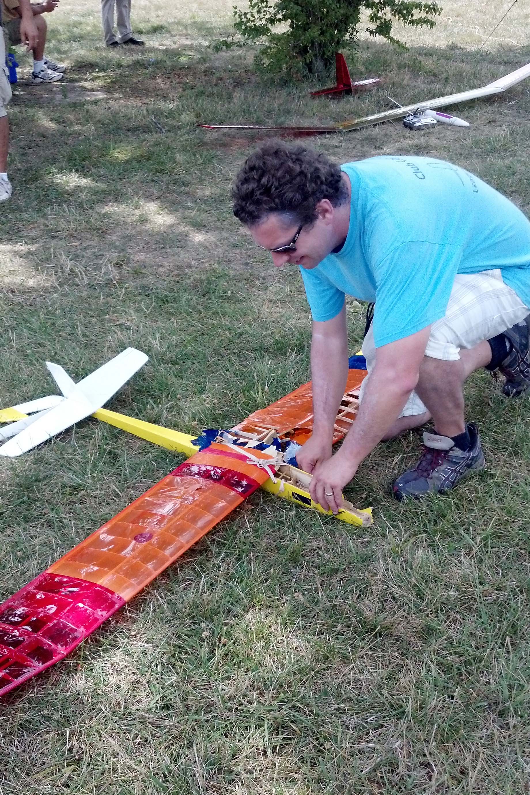 Ken Rice mans the scoring table Don Harris looks on and it looks like Dave Rice is going to go fly. A couple of high tech RES planes in the foreground